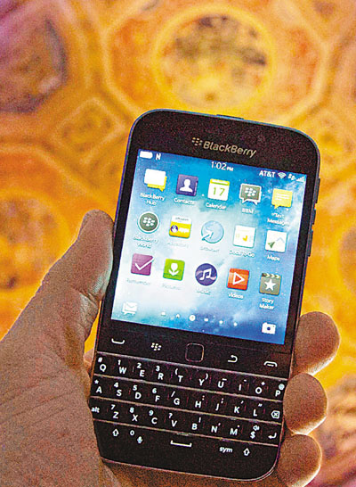 ■有傳三星與黑莓高層上周曾經會晤。圖為黑莓手機。 路透社