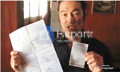 ■後藤早前手持進入敘利亞的文件。美聯社