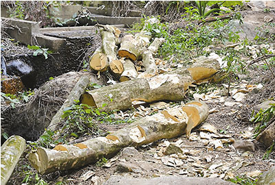 ■斬樹黨將有用土沉香斬走,遺下支離破碎的木材。