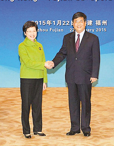 ■林鄭月娥日前與福建省副省長鄭曉松主持閩港合作會議第一次會議。福建傳真