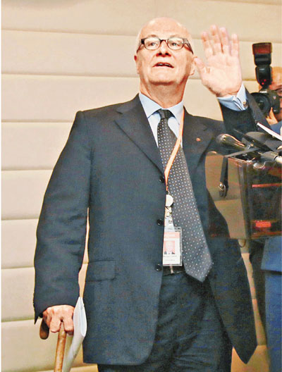 ■連納智昨日會見傳媒時表現傷感,他形容「今天是傷感的一日」。彭子文 攝