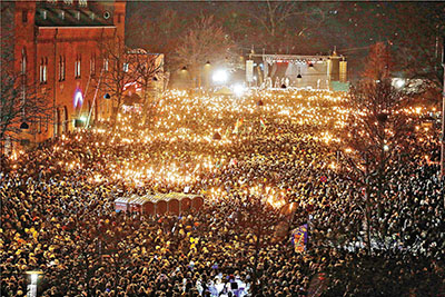 首都3萬多名民眾手持蠟燭,聚集案發咖啡店附近一個廣場,一同高唱已故披頭四樂隊主音約翰連儂的反戰名曲《Imagine》紀念遇難者,場內放滿民眾獻上的鮮花,有人留下寫上「絕不畏懼」的紙牌,以示不會向極端主義低頭。