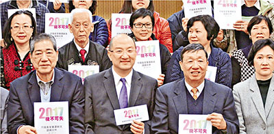 ■譚志源出席荃灣區議會特別會議,各人手持「2017機不可失」宣傳品。 黃偉邦 攝