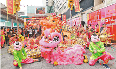 香港文匯報訊(記者 袁楚雙)海港城昨午迎來一片熱鬧鑼鼓,由金龍醒獅及兩名財神向途人祝賀羊年新歲,更有小朋友打扮成可愛版十二生肖助興。海港城今年邀請本港知名的多元化空間設計師湯兆榮,以紅橙色為主調設計農曆新年佈置「喜氣羊羊」,佈置中以逾20呎高的巨型雙喜拱門及「喜氣祥廊」最矚目。