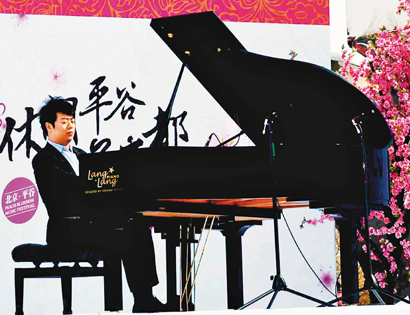 ■郎朗為北京平谷桃花音樂節開幕式演奏。本報北京傳真