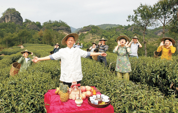 昨日,福建武夷山茶農按傳統習俗在茶園舉行「喊山」儀式,眾茶農齊聲高喊「茶發芽嘍!茶發芽嘍!」標誌一年一度的春茶生產正式開始。 據悉,武夷山市是福建茶葉的主產區,目前全市茶山面積14.8萬畝,年產茶葉7,800噸,年產值15.8億元。 新華社