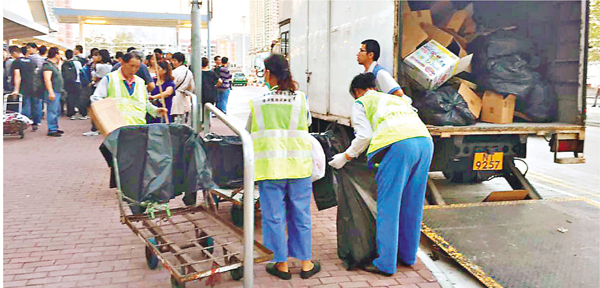 ¹Àô¸pªº²M¼ä©Ó¿ì°Ó¥ç¼W¥[¤H¤â¤Î¦w±Æ©U§£¨®¡A§Y®É²M²z¤ô³f«Èµ¥¿ò¤Uªº¯È½cµ¥¼oª«¡C¦³²M¼ä¤u¤Hªí¥Ü¡Aªñ¤ë¨C¤é§¡¦³¤j¶q¡u¤ô³f«È¡v¦b¸¨°¨¬w¤ä½uºÞ¨î¯¸¶i¦æ¤À³f¡A¨ä¶¡©Ò²£¥Íªº¯È½cµ¥¼oª«¡A¦h¹F¥i¸üº¡3¬[¤j³f¨®¡C¥L«ü¥X¡A¹L©¹¸¨°¨¬w¤ä½uºÞ¨î¯¸¥u¦³1¦W²M¼ä¤u¤H¡A¬ù©ó±ß¤W9®É²M²z¦b³õ¼oª«¡A¬G¦³¥«¥Á¦b²M²z«eÄá±o¯È½c¡u°ï¿n¦p¤s¡vªº±¡ªp¡C