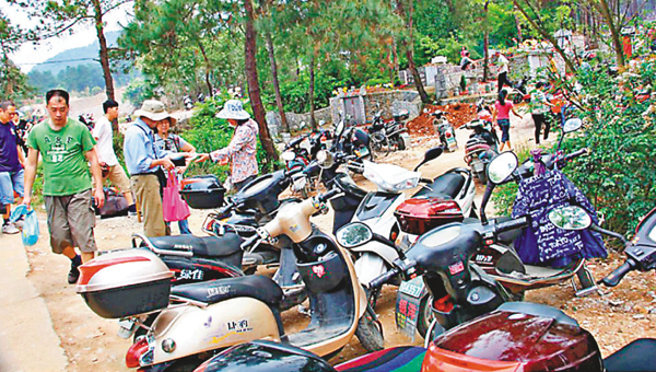 ■遊客活動區域緊貼私墳。 本報廣西傳真