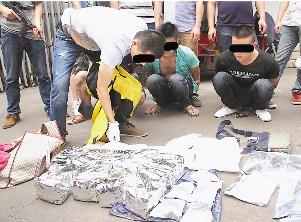 廣西防城港警方昨日披露,當地一個長期往來於廣東及防城港邊境地區的涉嫌家族武裝販毒團夥被端,該團夥8名犯罪嫌疑人落網,警方並繳獲25千克冰毒、搖頭丸及槍彈一批。 ■中新社