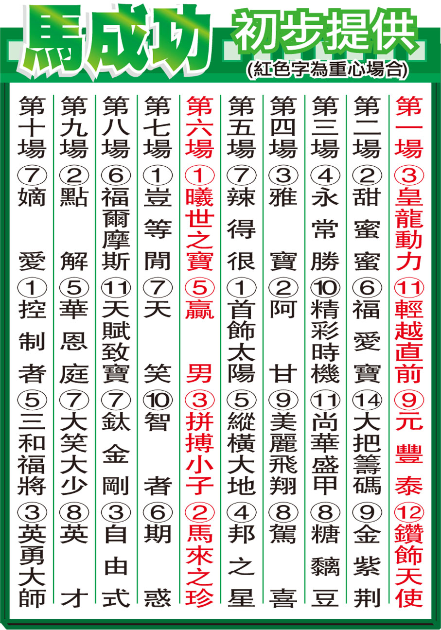 周六沙田十場泥草賽排位配搭表 (2015-05-15) (圖)