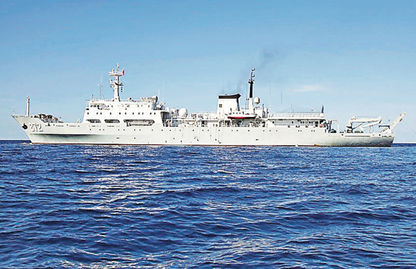 ■航行中的中國海軍海洋綜合調查船竺可楨船。 中新社