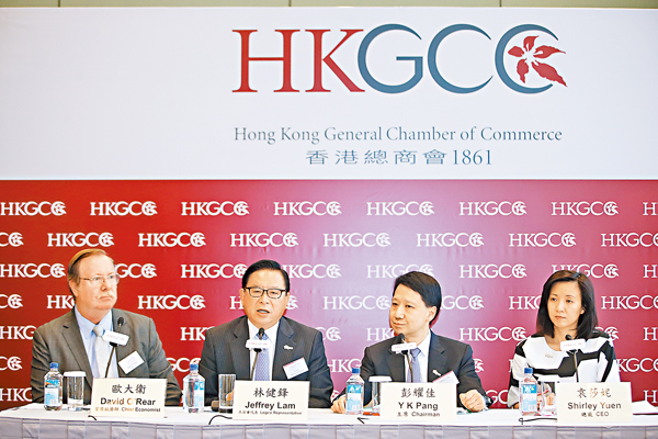 他坦言,香港近年面對茖I重的政治壓力,最終引發歷時頗長的「佔領」行動,他促請香港社會各界以香港基本法及全國人大常委會的相關決定為基礎,並以「一國兩制」原則為出發點,共同促成政改順利通過,「為了個人、子女及社會未來,商會有責任因應現實環境,設法綜合社會各界的理想及願望,衷心希望政改不會受拒絕妥協的人阻撓。」