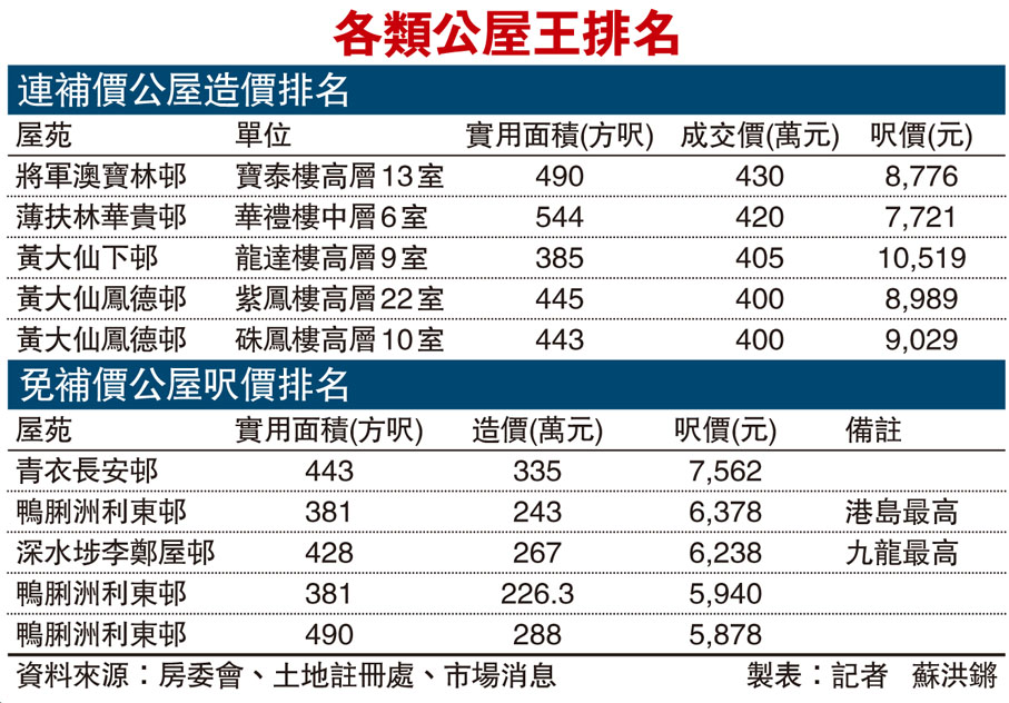 癲價朝代:長安h膺全港公屋王 綠表價335萬 呎價破7000 (圖)