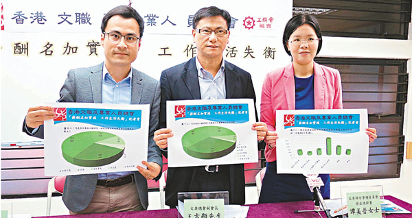 香港文匯報訊 (記者 郭兆東) 打工仔最怕加薪幅度不及通脹等同變相減薪,還要半夜「收call」處理公事,壓力之大隨時令人喘不過氣。工聯會文職及專業人員總會昨日公布的調查結果發現,逾40%受訪白領今年遭凍薪或減薪,加薪幅度能追上通脹者僅得16%,令人失望。總會指,「收工鬥遲走」已成為不健康的公司文化,認為僱主有責任令員工準時完工下班,不應以群眾壓力逼員工超時工作,建議訂立含標準工時元素的合約工時,並以每周40小時為界,及提供1.5倍超時補水起牽制作用。