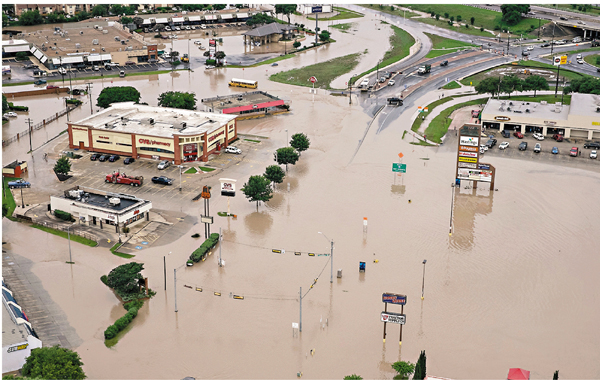 美國中部廣泛地區上周六至周日遭逢暴雨,部分地區錄得破紀錄降雨量,引發嚴重水災,得州及俄克拉何馬州共至少有3人死亡,2,000人要緊急疏散,得州有多達400間屋被沖毀。