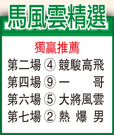 「一哥」助手踱,捉到實下伸長馬頸搶扯愈行愈好火氣,朝氣勃勃,步爽力足,氣勁充盈,易廄後已露勇態。