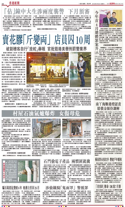 香港文匯報訊(記者 杜法祖)銅鑼灣一間藥行的職員,前年向一名來自廣州女顧客售賣花膠時,以「斤變両」手法劏客。事主不忿被劏,3個多月後帶備錄音機再到藥行自行「放蛇」,訛稱想買花膠並偷錄對話過程後,向海關投訴。涉案職員早前被裁定罪成,東區裁判法院裁判官李紹豪昨斥被告行徑近乎欺詐,影響香港購物之都美譽,要判處阻嚇性刑罰以警告業界,故判被告監禁10星期及賠償事主一萬元,但准其保釋外出等候上訴。海關回應歡迎法庭的判刑,顯示法庭重視案件。