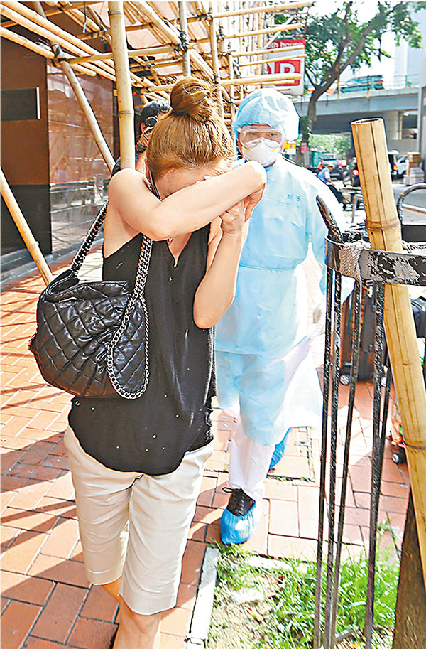 ■穿黑衣的韓國籍女子(前)在銅鑼灣伊利莎伯大廈被接走,送往度假村隔離。