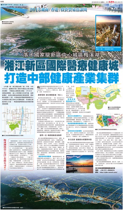 湘江新區國際醫療健康城自今年啟動前期工作以來,各項工作快速推進。據梅溪湖投資(長沙)有限公司負責人介紹,湘江新區國際醫療健康城將採取市場化運作,以「政府引導、市場運作」為原則,整合「土地、政策、資本、技術、創新」五大要素,通過市場化運作,充分利用多種合作及融資方式,如整體合作開發、定制BT、PPP、合資基金等,進行項目的運作和管理。項目還將設立醫療健康產業扶持基金,為項目的快速發展提供完整的金融服務及資金保證。