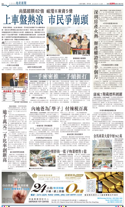 由於兩個上車盤一同開售,拖累過去兩日一手交投零星,只得38宗的零星成交,與之前一周的交投相若。綜合市場資訊,以元朗尚悅過去兩日成交最多,有11宗買賣;信置九龍城The Avery則沽出最後1伙,樓盤全數78伙宣告沽清。