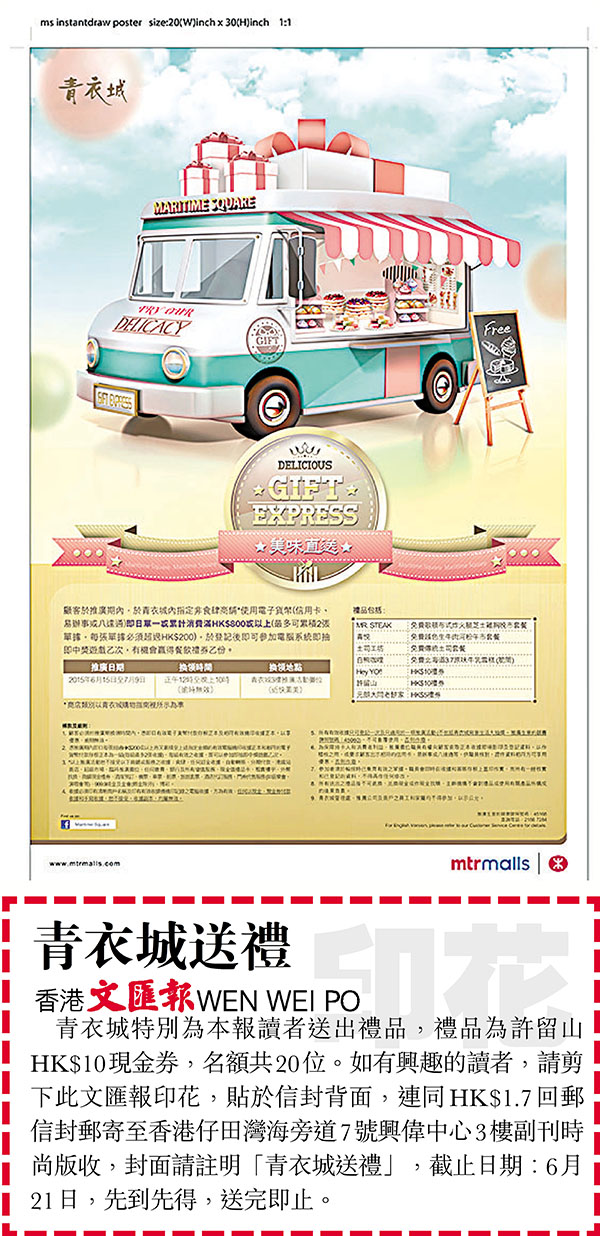 ¥Ñ6¤ë15¤é¦Ü7¤ë9¤é´Á¶¡¡AÅU«È©ó¥¿¤È12®É¦Ü±ß¤W10®É¦b«C¦ç«°¤º«ü©w«D¹¸v°ÓçE¨Ï¥Î¹q¤l³f¹ô¡]«H¥Î¥d¡B©ö¿ì¨Æ¡B¤K¹F³q¡^§Y¤é³æ¤@©Î²Öp®ø¶Oº¡HK$800©Î¥H¤W¡]³Ì¦h¥i²Ö¿n2±i³æ¾Ú¡A¨C±i³æ¾Ú¥²¶·¶W¹LHK$200¡^¡A©ó3¼Ó±À¼s¬¡°ÊÅu¦ì¡]ªñ§Ö¹Ï¬ü¡^µn°O«á§Y¥i°Ñ¥[¹q¸£¨t²Î§Y©â§Y¤¤¼ú¹CÀ¸¤A¦¸¡A¦³¾÷·|űoÀ\¶¼Â§¨é¤A¥÷¡A¼ú«~¥HÀH¾÷©â¼Ë§Î¦¡¡A¦Û°Ê©â¥X¡A§«~¦pMR. STEAK§K¶Oºq¹y¥¬¦¡¬µ¤õ»LªÛ¤hÂû¯Ý±ß¥«®MÀ\¡B«C®®§K¶O¶V¦¡¥Í¤û¦×ªe¯»¤È¥«®MÀ\¡B¤g¥q¤u§{§K¶O¶Ç²Î¤g¥q®MÀ\¡B¥Õºµ©@ù§K¶O¥_®ü¹D3.7ì¨ý¤û¨Å³·¿|¡]¯Üµ©¡^¡BHey Yo!! HK$10§¨é¡B³\¯d¤sHK$10§¨é¡B¤¸®Ô¤j¦P¦Ñ»æ®aHK$5§¨éµ¥¡C