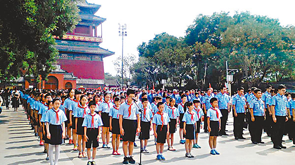 為紀念中國人民抗日戰爭暨世界反法西斯戰爭勝利70周年,昨日12,000名北京民眾聚集在鐘鼓樓廣場,以默哀的方式,緬懷先烈。在默哀儀式現場,古老的鼓樓、迎風招展的五星紅旗,低頭默哀的民眾,構成一幅肅穆、凝重的畫面。整個儀式過程,廣場上鴉雀無聲,讓在現場的人們,感受到一份莊重。