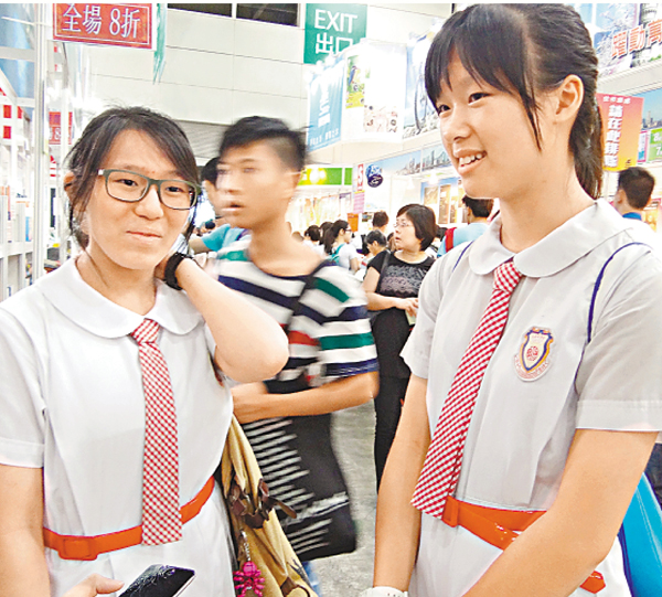 兩位余同學(中五學生):「學校活動完順便來逛書展,因臨時入場,未有特別預算,暫時只買了繪本,也有考慮在書展買教科書,通識科難答中要點,可能買答題技巧之類的參考書,而且在書展買的確比坊間便宜一點。」