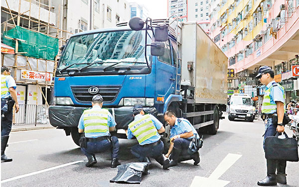 香港文匯報訊(記者 杜法祖)觀塘及深水鶿Q日先後發生涉及過路老婦車禍,釀一死一傷。一名八旬老婦在牛頭角道過馬路時,遭一輛凍櫃貨車撞倒並捲入車底浴血昏迷,消防員將其救出送院證實不治,警方呼籲目擊者提供資料助查;另一名七旬老婦在東京街過馬路時,亦遭一輛小巴撞倒重傷,有附近診所仁醫聞訊即帶同女護趕至為其急救,其後由救護車送院。