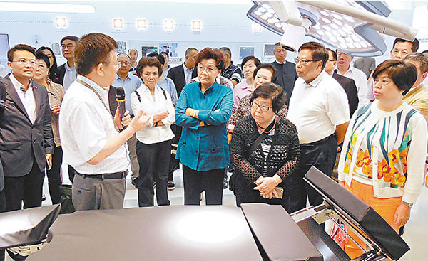 ■中聯辦副主任殷曉靜昨與港區全國人大代表考察團,聽取邁瑞集團人員講解數碼化手術室運作原理。鄭治祖 攝
