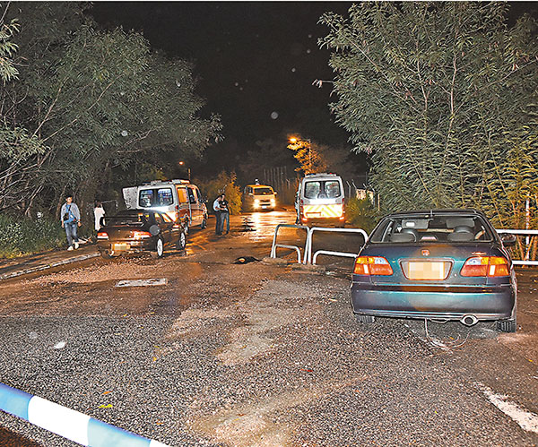 ■被偷私家車(右)在長春新村對開失控撞欄。