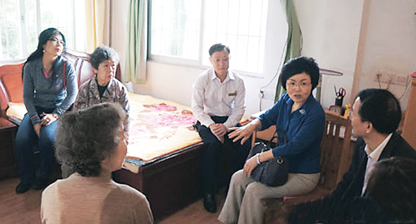 伍淑清一行聽取了公寓總院長徐滿祥對公寓建設規模及管理運營情況的介紹,尤其是作為大型養老機構,在養醫結合方面對社會養老服務的輻射功能作用。參觀公寓後,伍淑清感嘆老年公寓環境優美、空氣清新、佈局科學、設施齊備,特別是養醫教研一體化的特色,非常適合老人養老。來到別墅院探望75歲高齡的郭婆婆時,伍淑清表示:「要大力關心扶持民辦養老服務機構,還要鼓勵更多的社會力量積極參與到養老福利事業中,共同做好老年人安享晚年工作。」