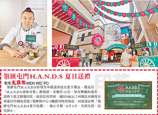 »â¶×ºX¤U¦ì©ó¤Ùªù¤j«¬ºXÄ¥°Ó³õH.A.N.D.S¤µ¦~7¤ë¤w¥¿¦¡¥þ±¶}·~¡A¥Ñ§Y¤é°_¦Ü8¤ë9¤é³{©P¥½¡A¯S§OÁ|¿ì¡uH.A.N.D.S¤â³Ð¥ò®L²½¡v¡A¥H¡u¦Y³Üª±¼Ö¡v¬°¥D¥´¡A¯S§O¥H¡uì³Ð¡v¬°¤¸¯À¡A§eÄm¡uH.A.N.D.S´þ¨ý¥«¶°¡v¡Aº¦¸¤Þ¶i10¤j¼é¬y¥²¦Y³Ð·N¬ü¹¡A®i²{´Â®ð«k«k¤Î¼é¬y¯S¦âªº§Î¶H¡A¥]¬AÁú¦¡U«¬µ¯¦Ìµ©³·¿|¡B¤â¤uÂAªG³·±ø¡Bªø¬wÁú¦¡µJ¿}»æ¡B¤â½ÕMocktailµ¥¡AÅý¤j®a¤@¦¸¹L§Y³õ«~À|¡C«°¤¤¤H®ð²¢«~¤j®v¥j¹Å«T¡]Chef Koo¡^¥ç¥H¯S§O¹§÷°t¤W¹ñ·s¤f¨ý¡A¬°°Ó³õ¬¶»s¨â´Úº³Ð´þ¨ý²¢«~¡C