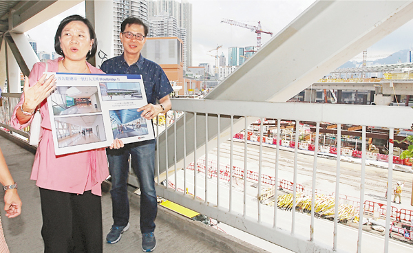 ■立法會議員梁美芬等視察高鐵西九龍總站與周邊發展的行人接駁設施。記者莫雪芝 攝
