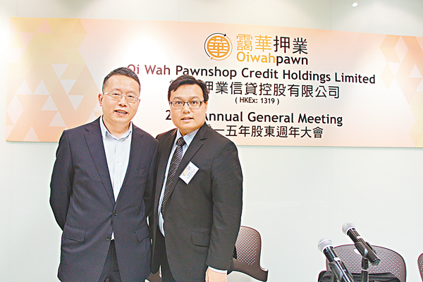 ■靄華陳啟豪(左)預期,典當業務在公司的業務佔比將跌,但不會因此放棄。 實習記者湯澤洋 攝