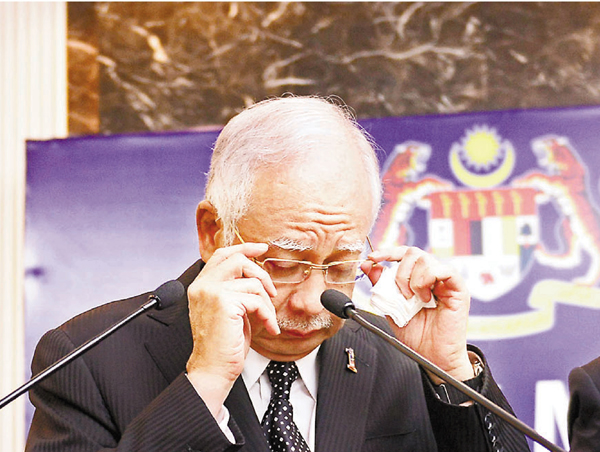 總理納吉布:「國際專家團隊已能『肯定』上周在留尼旺島發現的襟副翼殘骸來自MH370。」