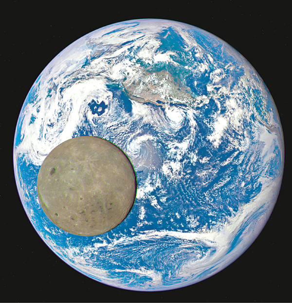 由於月球被地球「潮汐鎖定」(tidally locked),自轉周期與公轉周期相同,故地球上看到的永遠是月球的同一半球。距離地球約160萬公里的DSCOVR,利用「地球多色成像相機」(Epic)拍下地球和月球背面,可見兩者雖然同受太陽光照射,但地球相比月球要明亮得多。 ■《每日郵報》