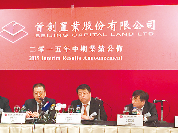 ■首創置業董事長王灝(中)認為,現時行業相對平穩,但不同城市仍然有不同發展。 吳婉玲 攝