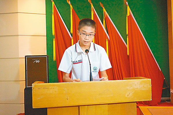 ■優秀學生代表伍奕錡講話。吳彥英 攝