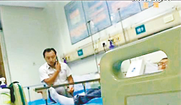 █接觸有毒物質的速遞員正在醫院輸液。 網上圖片