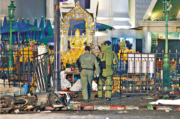 ■電單車炸彈就在四面佛前爆炸。美聯社
