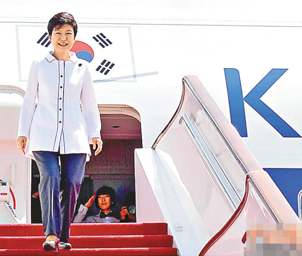 ■韓國總統朴槿惠9月2日起將訪華。圖為她2013年訪華落機時照片。 網上圖片