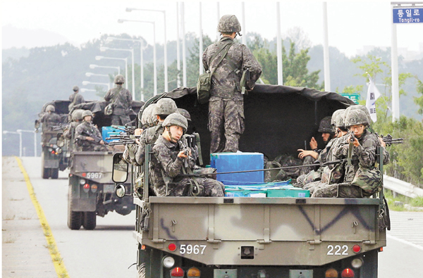 ■韓軍前日在非軍事區附近巡邏。 美聯社
