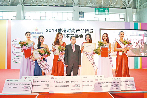 ■廠商會副會長兼展覽服務有限公司副主席吳清煥(中)與哈爾濱工展會「工展小姐大賽」冠、亞、季軍等得主合影。