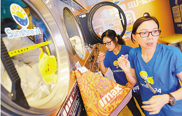 ■自助洗衣店現聘用兩位視障者。梁祖彝 攝