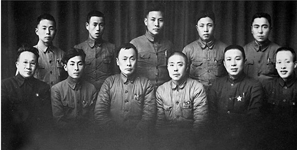 ■1938年1月6日,閩北、閩東、閩西、皖浙贛等游擊區的領導人到達南昌新四軍軍部。圖為各路英豪匯聚南昌合影,前左起張雲逸、葉飛、陳毅、項英、黃道、涂振農。後左起:顧玉良、沈冠國、溫仰春、曾昭銘、李步新。 本報江西傳真