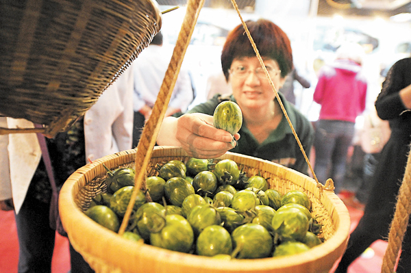2015絲綢之路國際生態產業博覽會暨綠色有機產品交易會昨日在甘肅張掖開幕。張掖西紅柿新品種「賊不偷」亮相。這種西紅柿是由甘肅省農科院與張掖農戶共同培育的新品種,因為該西紅柿成熟後也是綠色,故當地人形象地稱為「賊不偷」。 ■中新社