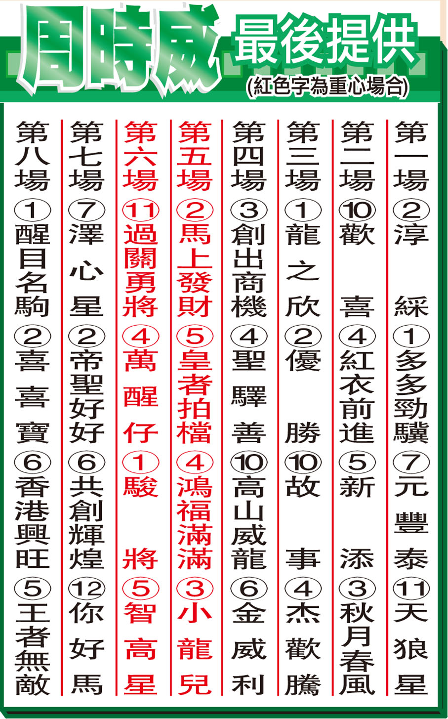 馬場神探各場推介 (圖)