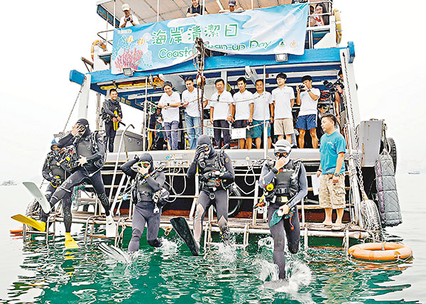 為響應國際海岸清潔日,漁農自然護理署與香港潛水總會昨日在西貢橋咀舉辦海岸清潔日,清除棄置於附近海床的捕魚用具及海灘的垃圾。