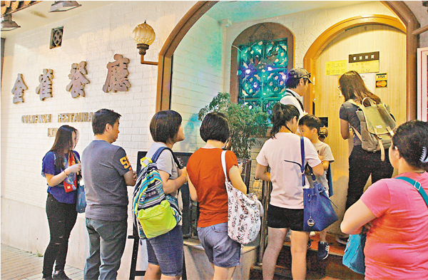 ■金雀餐廳昨晚「拉閘」後正式停業。不少食客紛前來光顧。 聶曉輝 攝