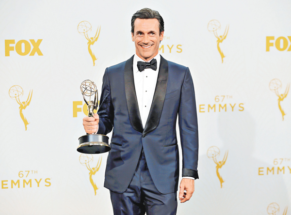 第67屆艾美獎前天在加州洛杉磯舉行頒獎典禮,獲今屆最多24項提名的人氣劇集《權力遊戲》(Game of Thrones)成為大贏家,並破大會紀錄共奪12項獎項之多,而《廣告狂人》(Mad Men)男星尊漢姆(Jon Hamm)等了7年終憑《廣》劇奪視帝,認真開心。